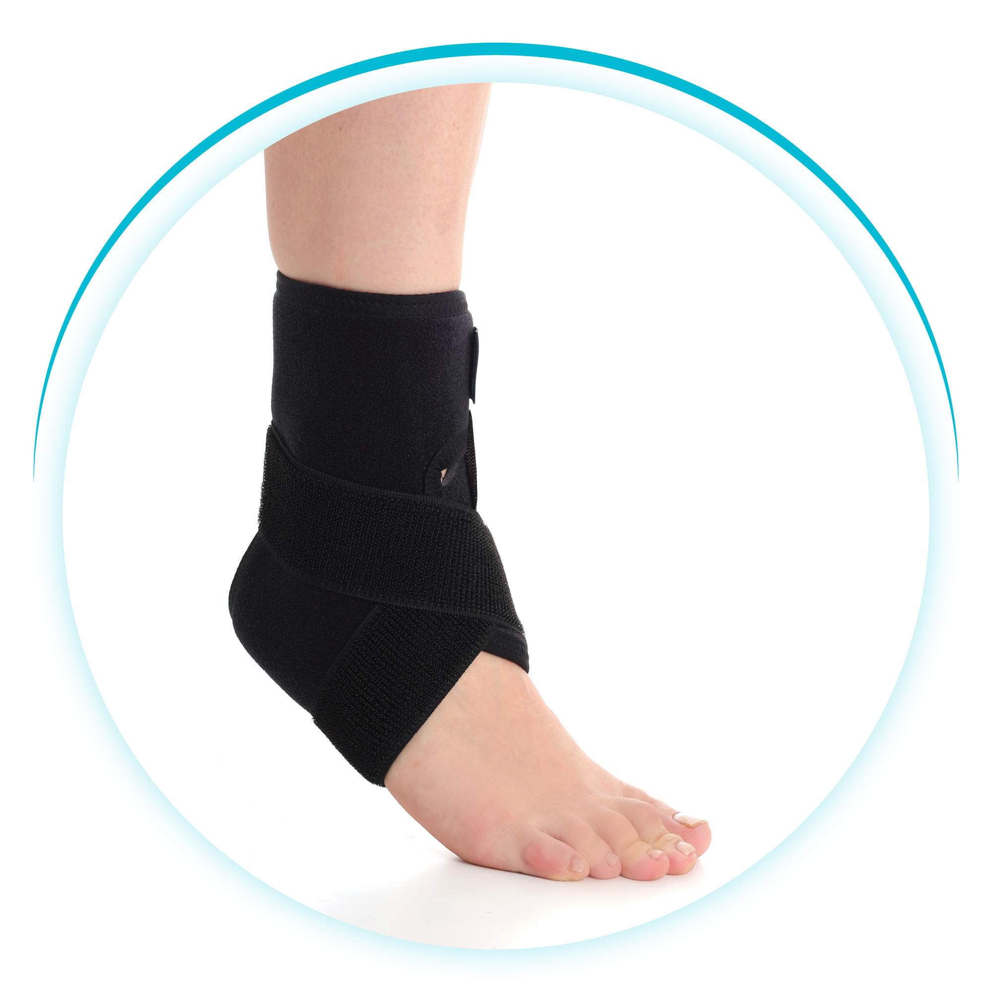 Standardna ortoza za skočni zglob izrađena od neoprena (AuraVelureActive), anatomski oblikovana za optimalno prianjanje. Pruža stabilnu potporu skočnom zglobu. Elastična ukrštena traka postavljena u obliku broja osam omogućava dodatnu kompresiju i stabilizaciju. Ortoza je univerzalne veličine, a pomoću čičak-traka (velkro zatvarača) omogućava individualno prilagođavanje korisniku.