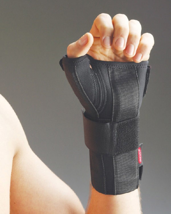 Ortoza za ručni zglob izrađena od neoprena, anatomski dizajnirana da imobilizuje zglob i palac u njegovom neutralnom položaju. Šina i dodatni zavoj omogućavaju dodatnu stabilizaciju. Zadržava toplotu tijela, poboljšava cirkulaciju i ubrzava liječenje. Koristi se kod sindroma karpalnog tunela, zapaljenja tetiva, imobilizacije kod bolova u zglobu, u postoperativnom periodu, nakon nošenja gipsa usljed preloma.