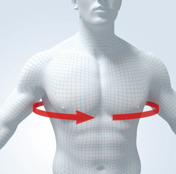 Pojas za grudni koš izrađen od fleksibilnog pamučnog materijala koji sprečava znojenje. Štiti grudnu kost tako što vrši kompresiju na rebra. Smanjuje bol u u svakodnevnim pokretima, pruža sigurnost i komfort pacijentu. Pomaže pružanju zaštite protiv bola prouzrokovanim impulsivnim aktivnostima.